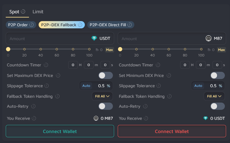 With fallback logic built directly into both **Spot** and **Limit** workflows, users can trade confidently knowing that every order has a clear path to completion even when market conditions are volatile or peer liquidity is temporarily limited.